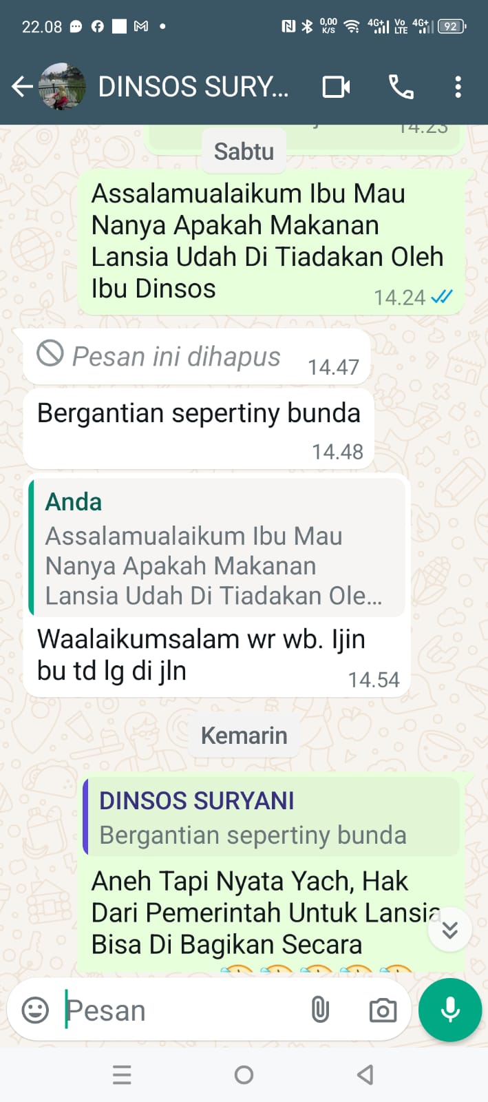 Sangat disayangkan Pendataan ibu SURYANI Ke RUMAH LANSIA PH Yang jadi korban Akibat Ulah dinas sosial yang tidak bertanggung jawab, yang menjadi seluruh lansia yang berada di RUMAH LANSIA PH tidak mendapatkan bantuan, Sumber Berita Akurat di tunjang Adanya Banyak saksi Dan bukti berdasarkan pantauan redaksi selama ini.