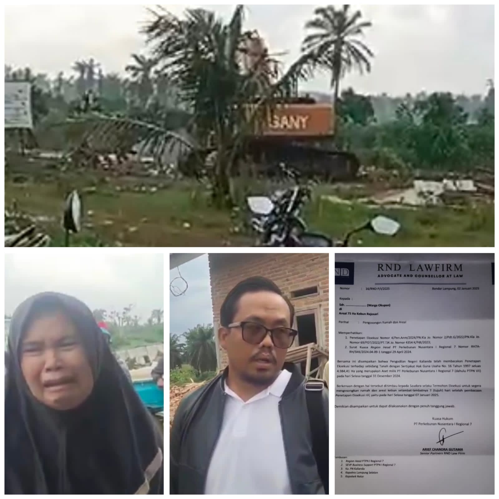 Salah satu poin yang menjadi sorotan adalah penggunaan surat perintah pengosongan rumah lahan yang diduga diterbitkan oleh pengacara PTPN, bukan oleh pengadilan sebagaimana mestinya, Sabtu (04/01/2025).